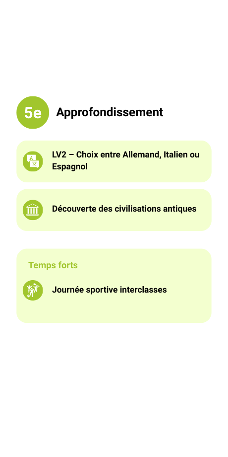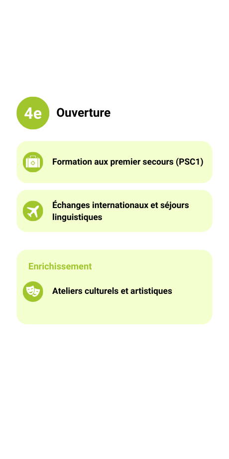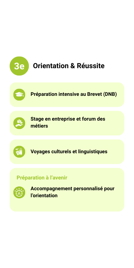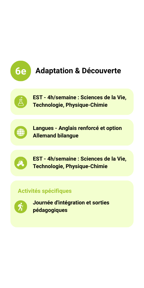 De la 6ème à la 3ᵉ Prépa-Métiers, nous préparons nos élèves à devenir des citoyens responsables, curieux et engagés, en leur offrant un cadre d’apprentissage stimulant et bienveillant.